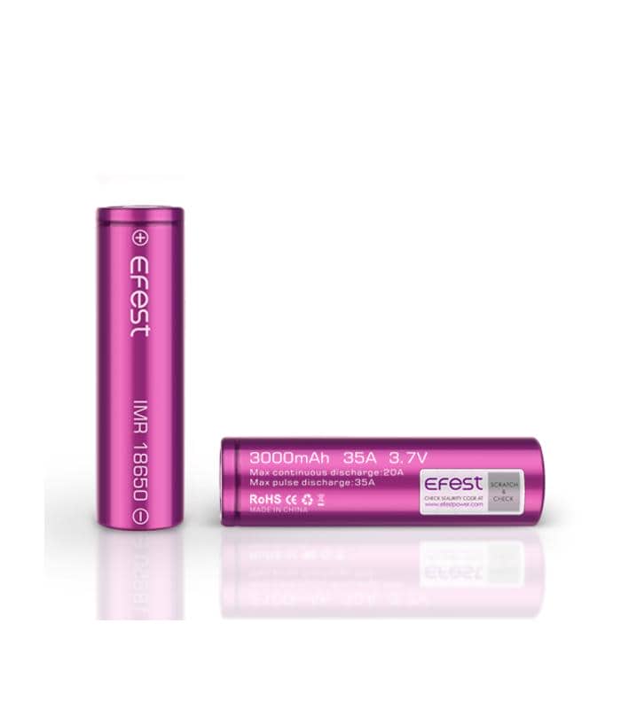 Μπαταρία 18650 με χωρητικότητα 3000mAh στα 35Α από την Efest. Χάρη στη μεγάλη της χωρητικότητα είναι ιδανική για συνθέσεις υπό του Ohm για μεγαλύτερη διάρκεια ζωής της μπαταρίας.