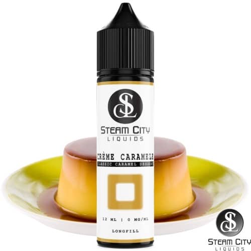 Η crème caramele της Steam City Liquids παρουσιάζει το γνωστό σε όλους γλύκισμα που αποτελείται από κλασική κρέμα βανίλιας με την προσθήκη σιροπιού καραμέλας.